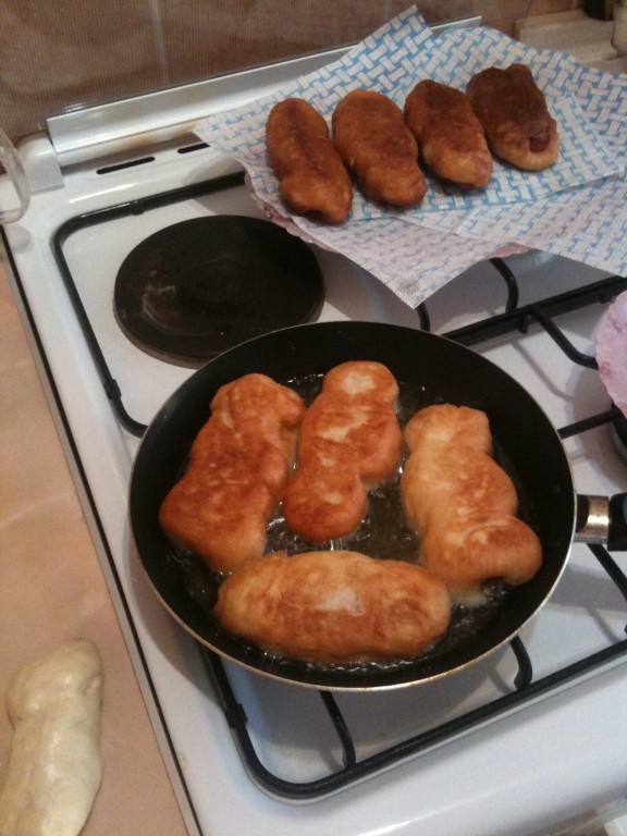 Готовые пирожки выкладывать на бумажное полотенце, чтобы впиталось лишнее масло.