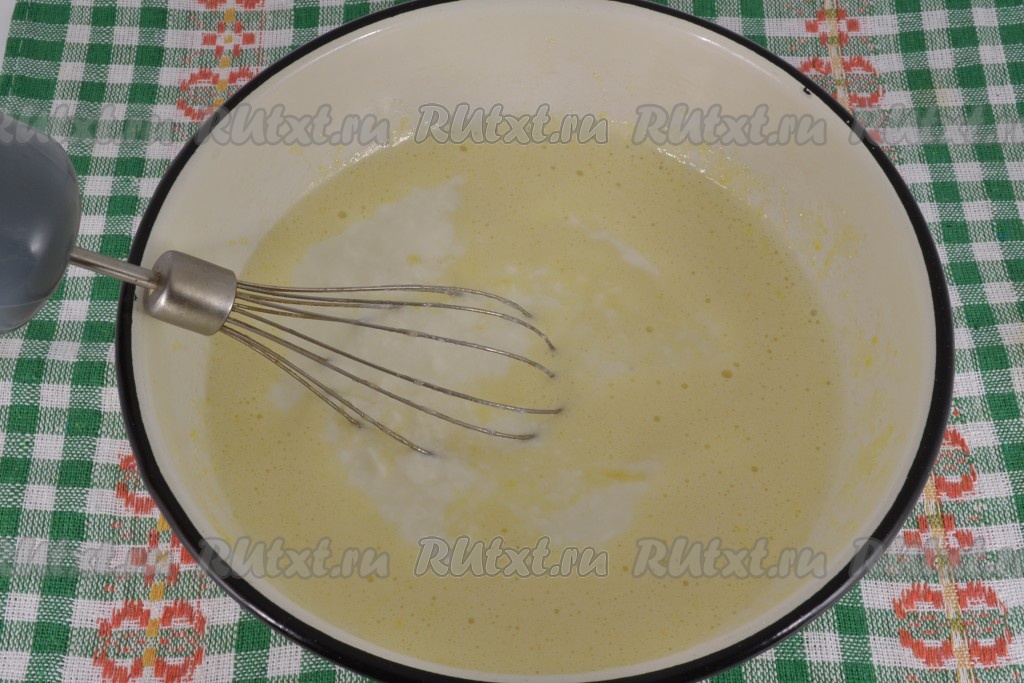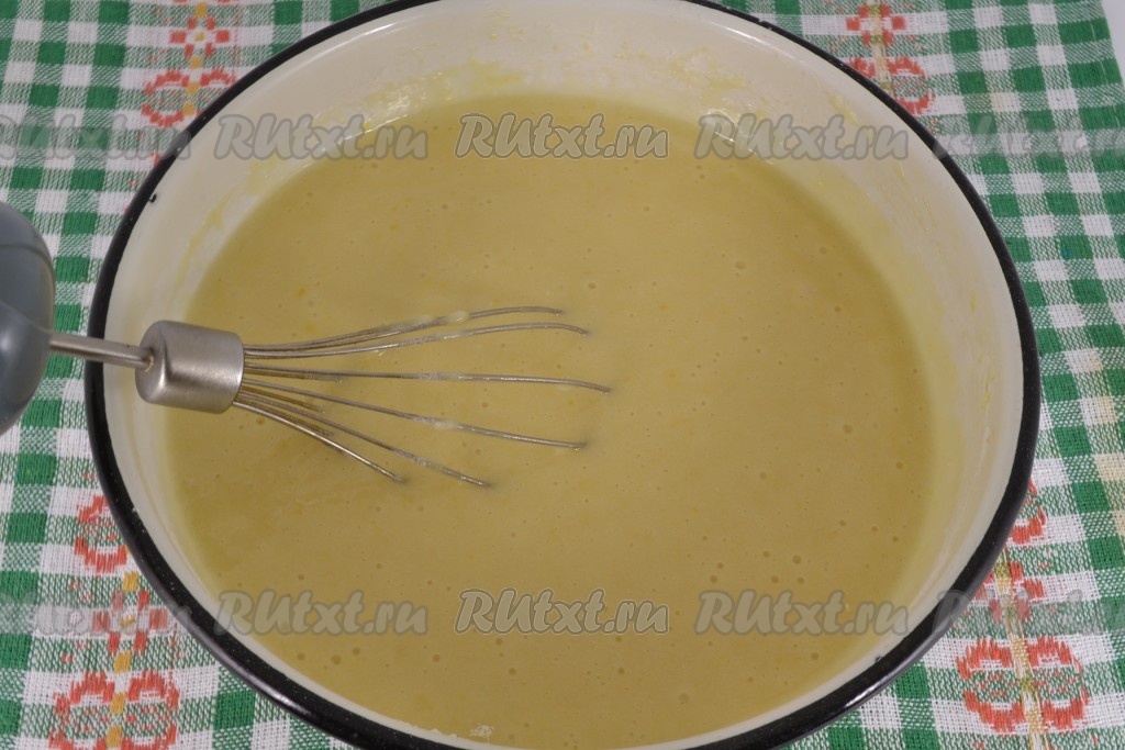 Тесто должно получиться гуще, чем для блинов, но реже, чем для оладий.