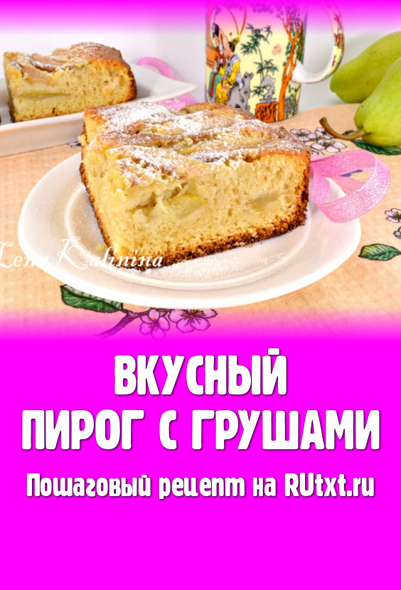 Предлагаю вам попробовать очень вкусный пирог с грушами. Консистенция у пирога получается влажная, сам пирог - нежный, ароматный и очень сочный. Просто бесподобная выпечка! На второй день пирог с грушами - еще вкуснее! Обязательно испеките - не пожалеете!