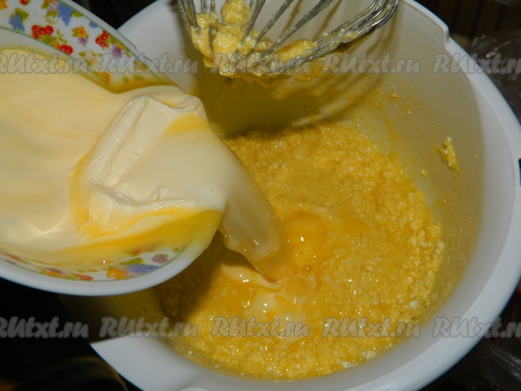 Яйца, сахар и творог взбиваем.