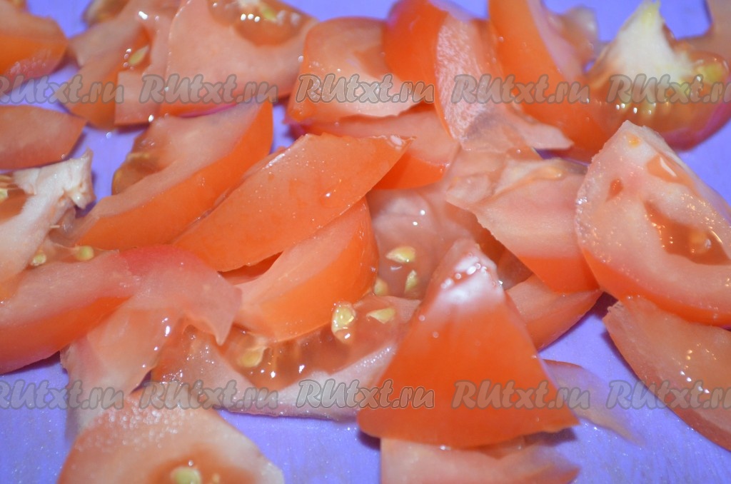 Помидор порежьте произвольно.