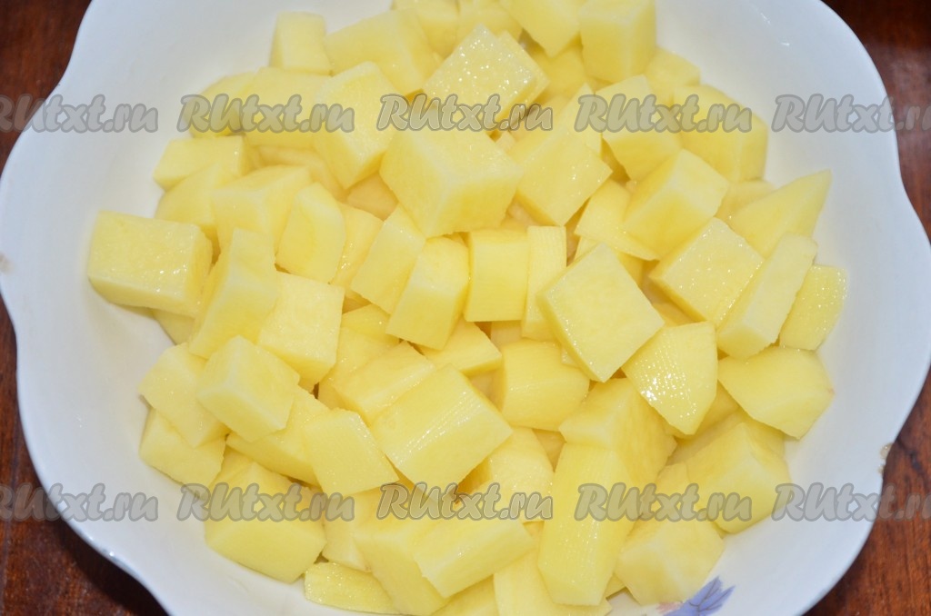 Картошку порежьте кубиками.