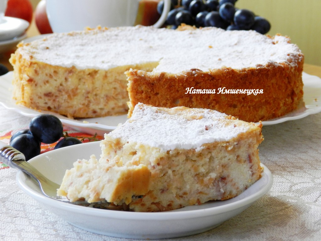 А вот как выглядит кусочек творожно-яблочной запеканки в разрезе. Такая выпечка из творога несомненно понравится всей семье!