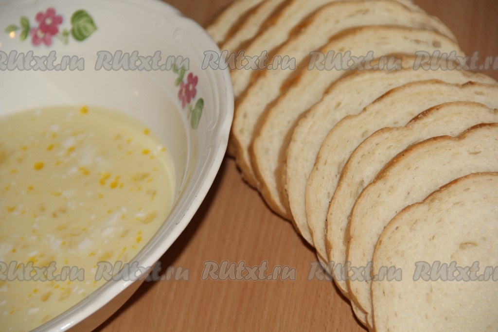 Батон нарезать на кусочки, для удобства можно использовать батон в нарезке.