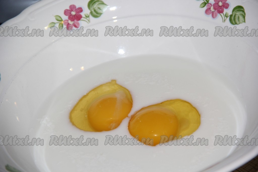 В глубокой миске соединить молоко, яйца, сахар. Всё хорошо перемешать венчиком или вилкой.