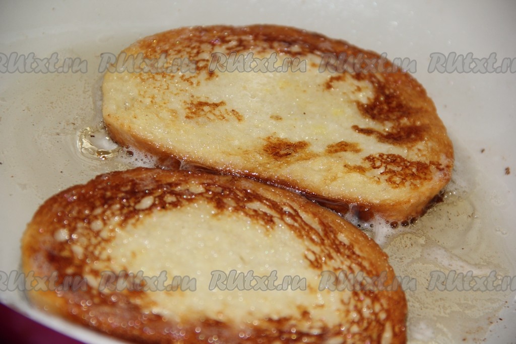 Жарить гренки с двух сторон до золотистой корочки на разогретой сковороде на растительном масле.