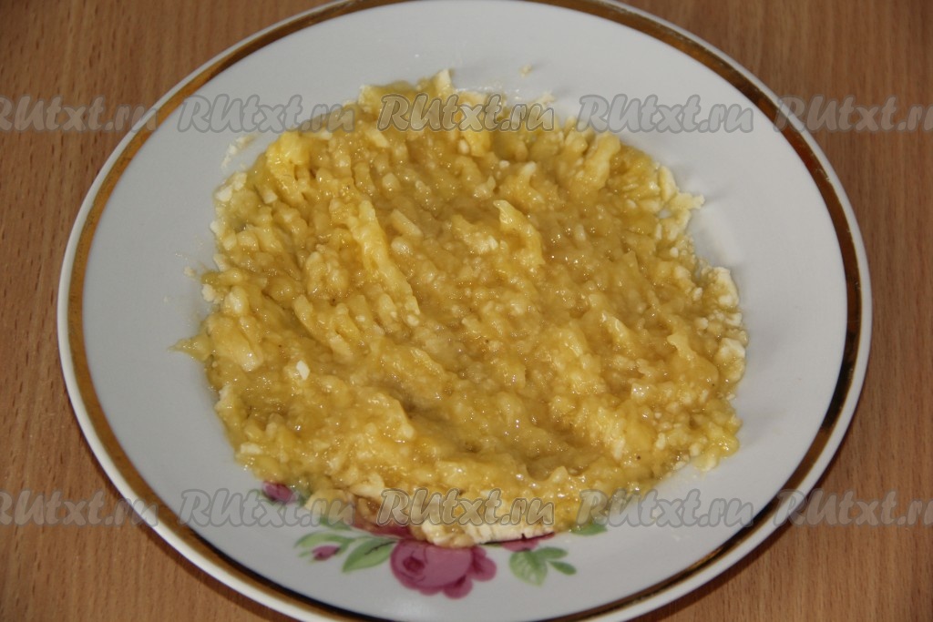 Очищенный банан разминаем вилкой в пюре.