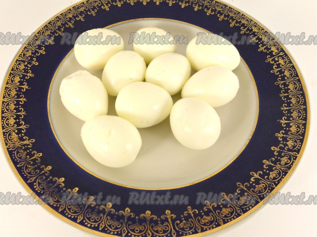Отварить в течение 2-3 минут, затем залить холодной водой и дать остыть. Очистить от скорлупы.