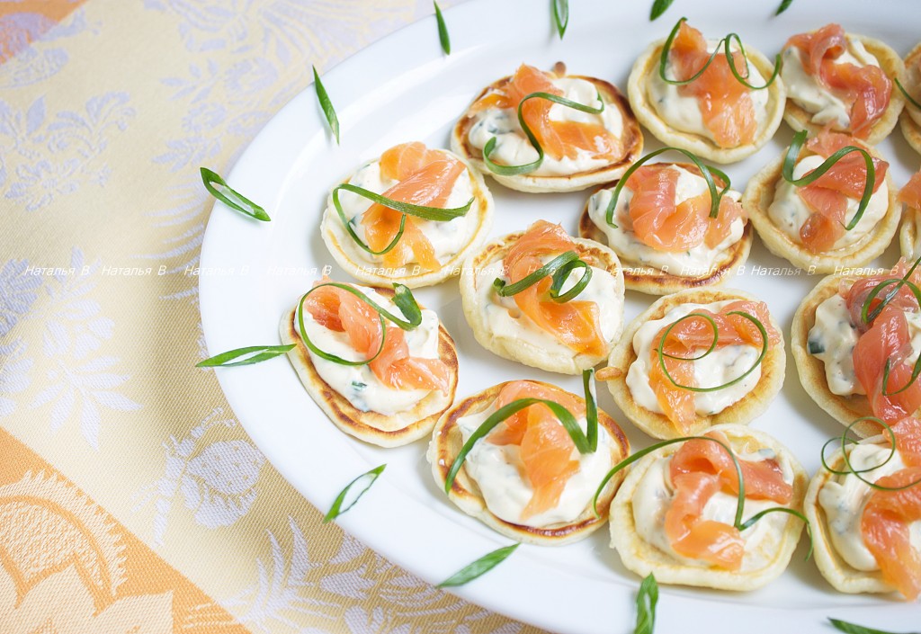Предлагаю приготовить на праздничный стол или для простого домашнего обеда очень вкусную и оригинальную закуску в виде миниатюрных блинчиков с майонезным соусом и подкопченной семгой. Самое главное, что готовится все очень быстро - за считанные минуты у вас на столе будет очень аппетитная и сытная закуска! Рецепт из кулинарной книги с моими небольшими изменениями.