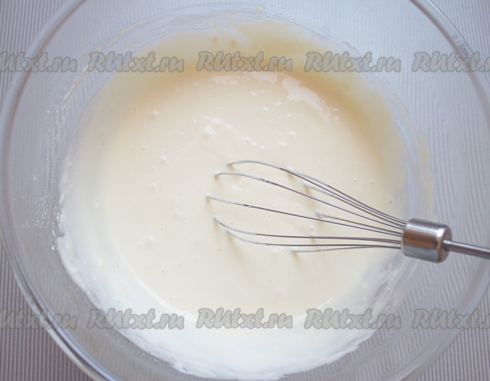 Все хорошенько перемешать до однородной консистенции без комочков. Тесто накрыть и оставить минут на 10.