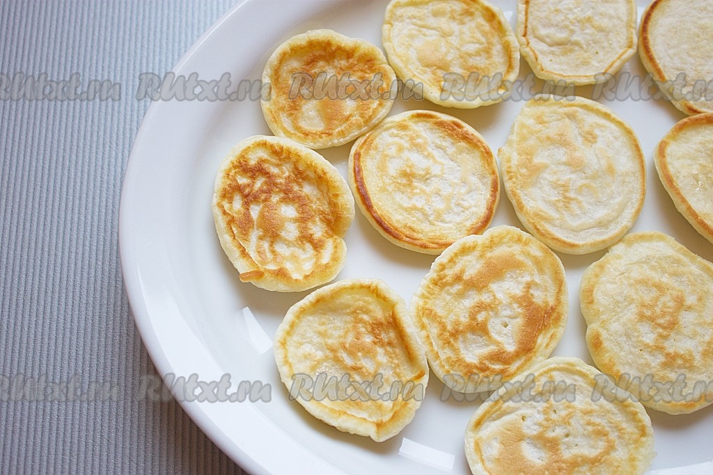 Готовые мини-блинчики выложить на блюдо.