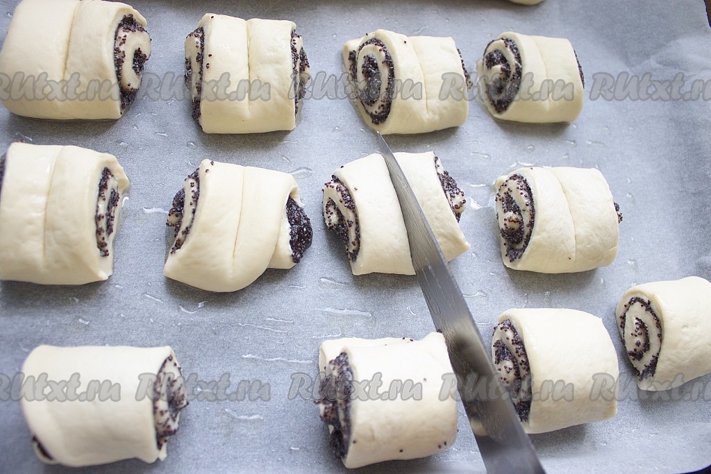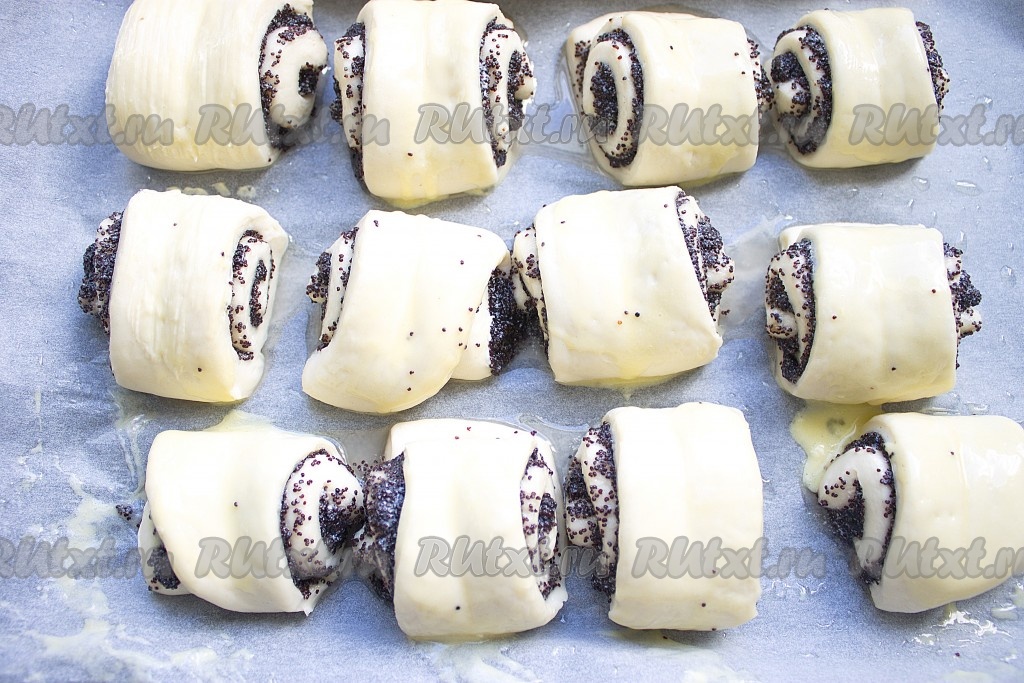 Равномерно распределить маковую начинку (1/4 на каждый рулет).