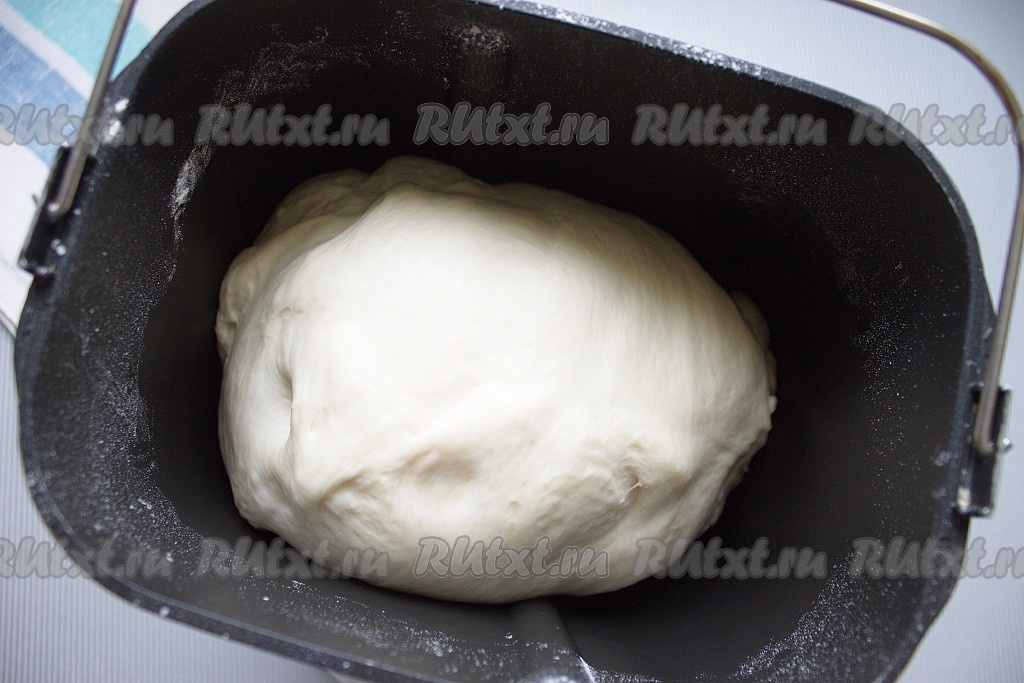 Тесто я делала в хлебопечке: все ингредиенты сложить в той последовательности, что написана в ингредиентах, установить режим "Тесто" (у меня 2 часа 20 минут). Обычным способом: в теплой воде растворить дрожжи и сахар, оставить минут на 10, затем добавить соль, растопленное сливочное масло и муку, замесить мягкое тесто, положить его в миску или кастрюлю, накрыть и поставить в теплое место на 2 часа.