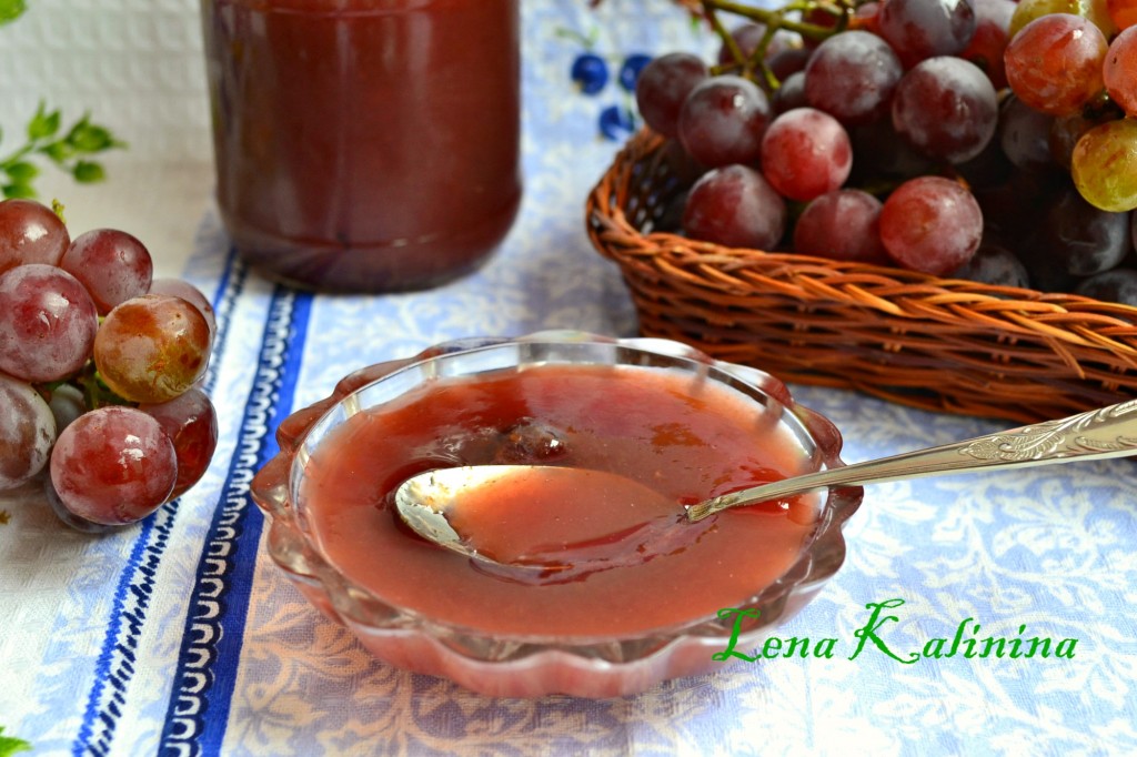 Необычайно вкусным и ароматным получается джем из винограда. Советую попробовать. Виноград подойдет синий, красный или розовый, с косточками или без. Такой джем можно закрыть и на зиму. Из данного количества продуктов получится 500 грамм джема.