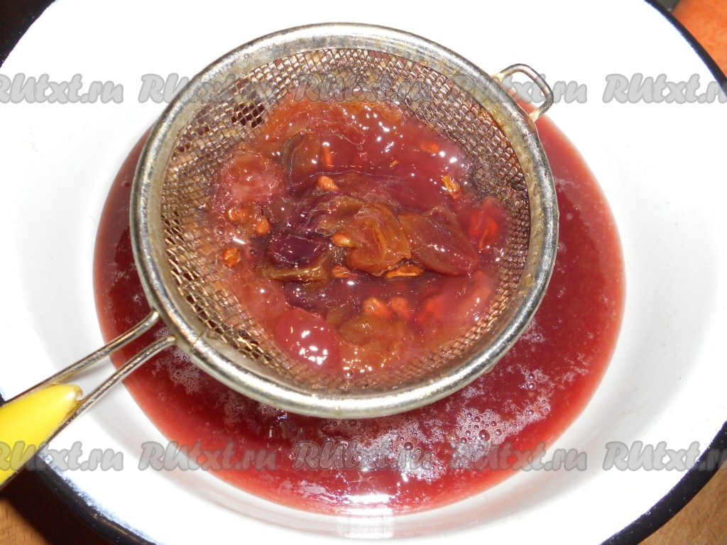 Выключить газ и оставить джем на 4-5 часов, прикрыв миску полотенцем. Затем джем протереть через сито. Жмых можно не выбрасывать, а использовать для приготовления компота.