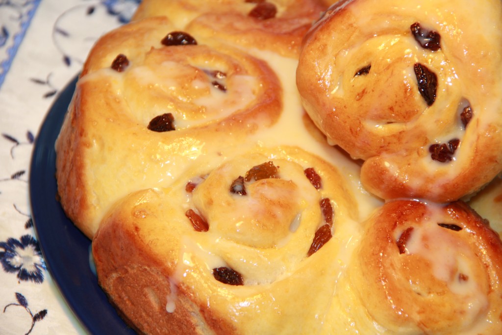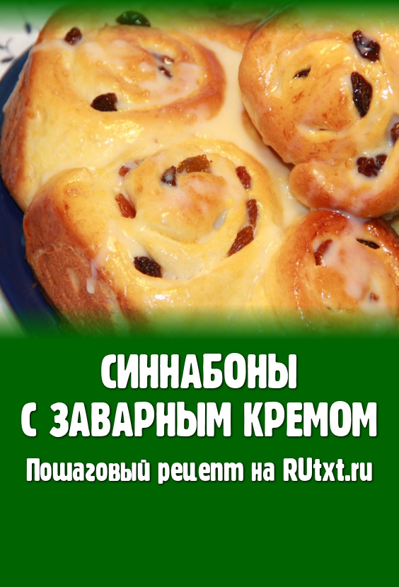 Перекладываем булочки на плоскую тарелку и поливаем нежным заварным кремом. Синнабоны получаются необыкновенно вкусными.