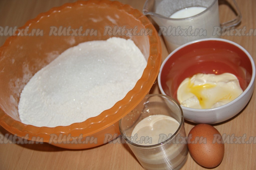 Для замешивания теста может потребоваться как больше, так и меньше муки, чем указано в ингредиентах, главное - ориентироваться на структуру замешиваемого теста.