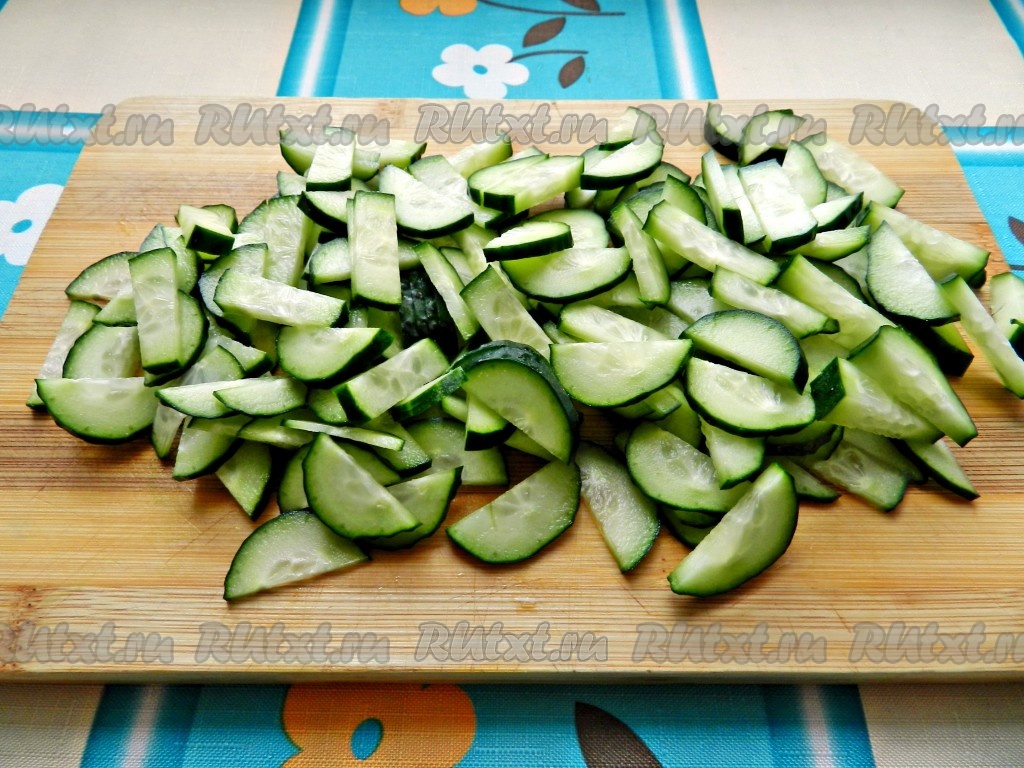 Огурцы нарезать небольшими брусочками.