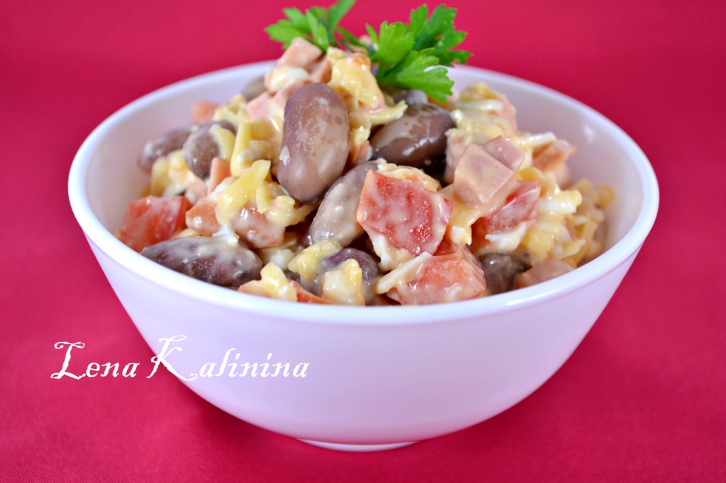 Далее добавить отварную или консервированную красную фасоль.