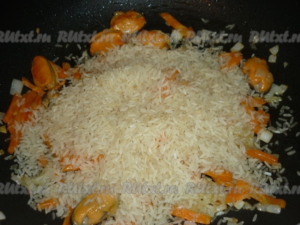Для приготовления плова с мидиями потребуется: