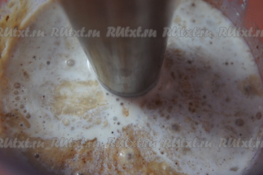 К творогу и банану всыпать какао (какао можно не добавлять, но мне нравится цветовой оттенок и вкус, которые придаёт какао мороженому) и сахар. Кстати, сахар можно заменить на мёд или сгущённое молоко. Взбить творожно-банановую массу погружным блендером на максимальной скорости. Масса должна стать однородной.