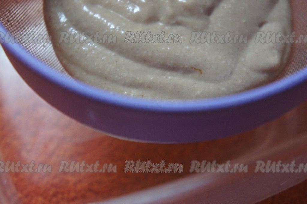 Я люблю, когда творожно-банановое мороженое получается абсолютно однородной консистенции, поэтому обязательно получившуюся массу протираю через сито. Если вы не против, чтобы в мороженом присутствовали какие-то частички творога или банана, тогда этот этап пропустите.
