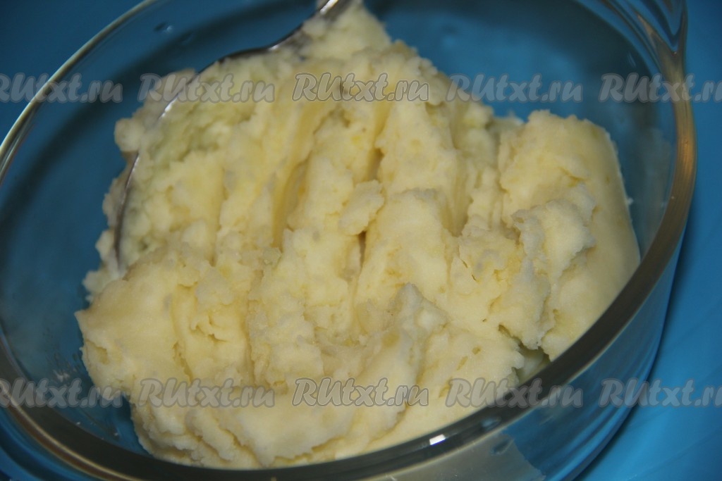 Приготовить начинку: картофель почистить, нарезать, залить водой и сварить в подсоленной воде до готовности. Затем готовый картофель размять толкушкой. В картошку добавить яйцо и хорошо перемешать. Начинка для ватрушек готова.