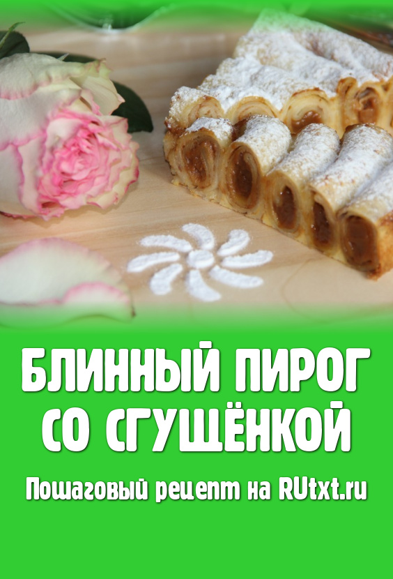 Хочу поделиться рецептом блинного пирога со сгущенкой. Начинкой может быть не только вареная сгущенка, но и творог, творог и сухофрукты, творог и свежие ягоды и т.д. Рецепты для выпечки блинчиков можно использовать любые. Чтобы блинный пирог держал хорошо форму, нужно набраться терпения и дать ему хорошо остыть. Верх пирога можно украсить сахарной пудрой, измельчёнными орехами или миндальными лепестками.