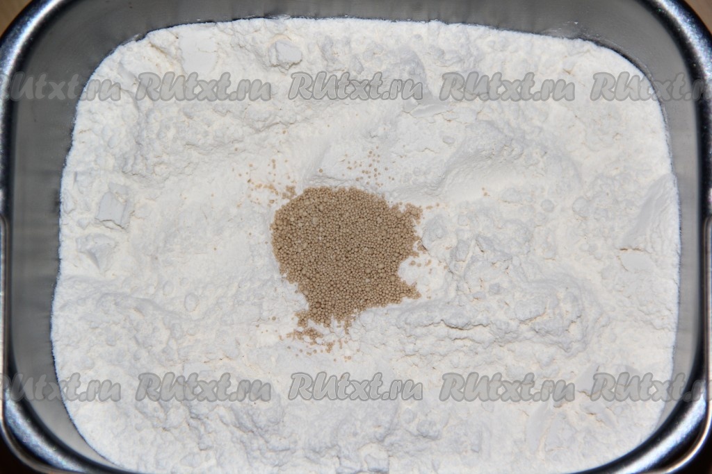 Далее всыпать муку и дрожжи. Продукты нужно закладывать в том порядке, как указано в инструкции к вашей хлебопечке.
