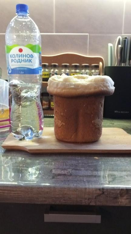 Выставить режим "Десерт", время приготовления 3 часа 35 минут. Корочка - светлая, вес - 750 грамм.