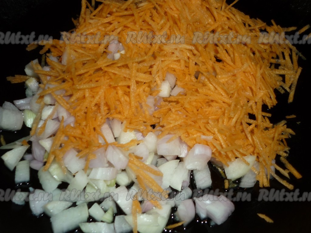 Отдельно обжариваем до золотистого цвета порезанный лук и натёртую морковь.