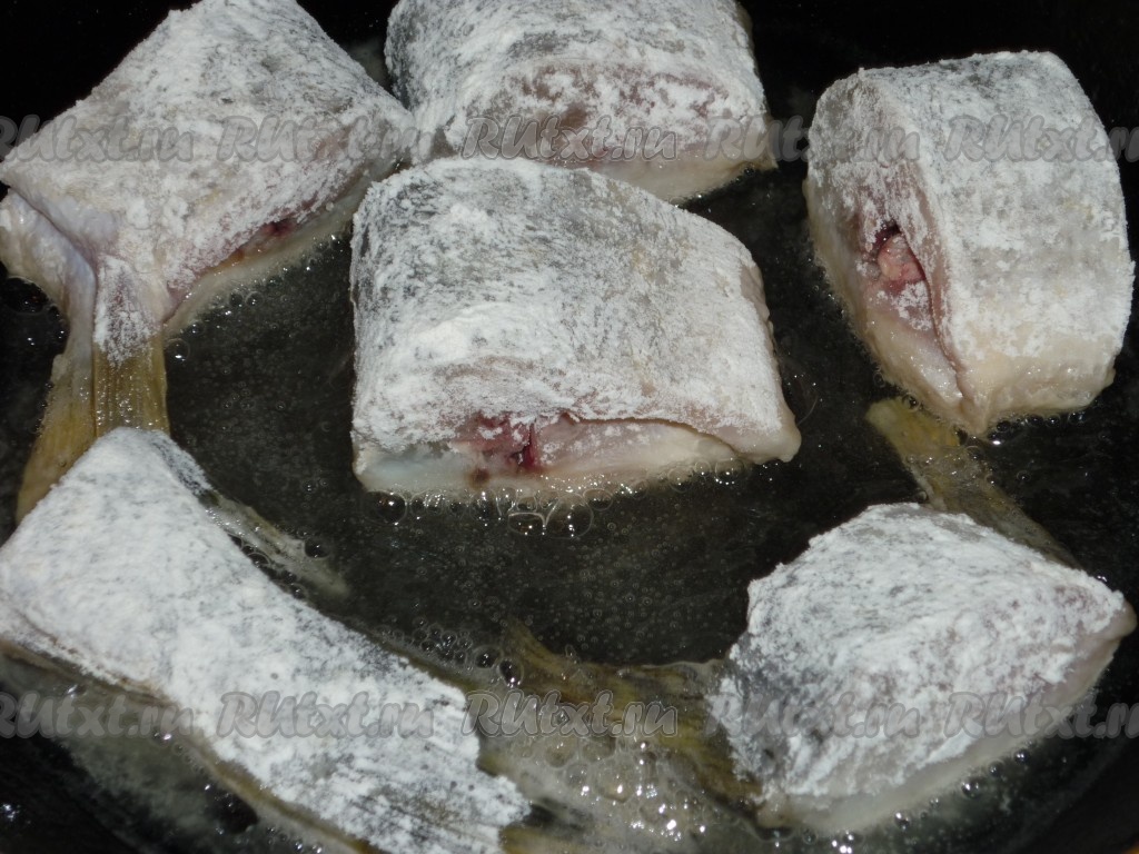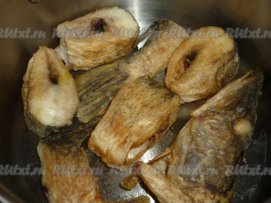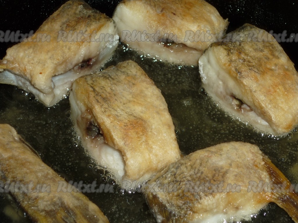 Жарим щуку на разогретом растительном масле с двух сторон до золотистого цвета.