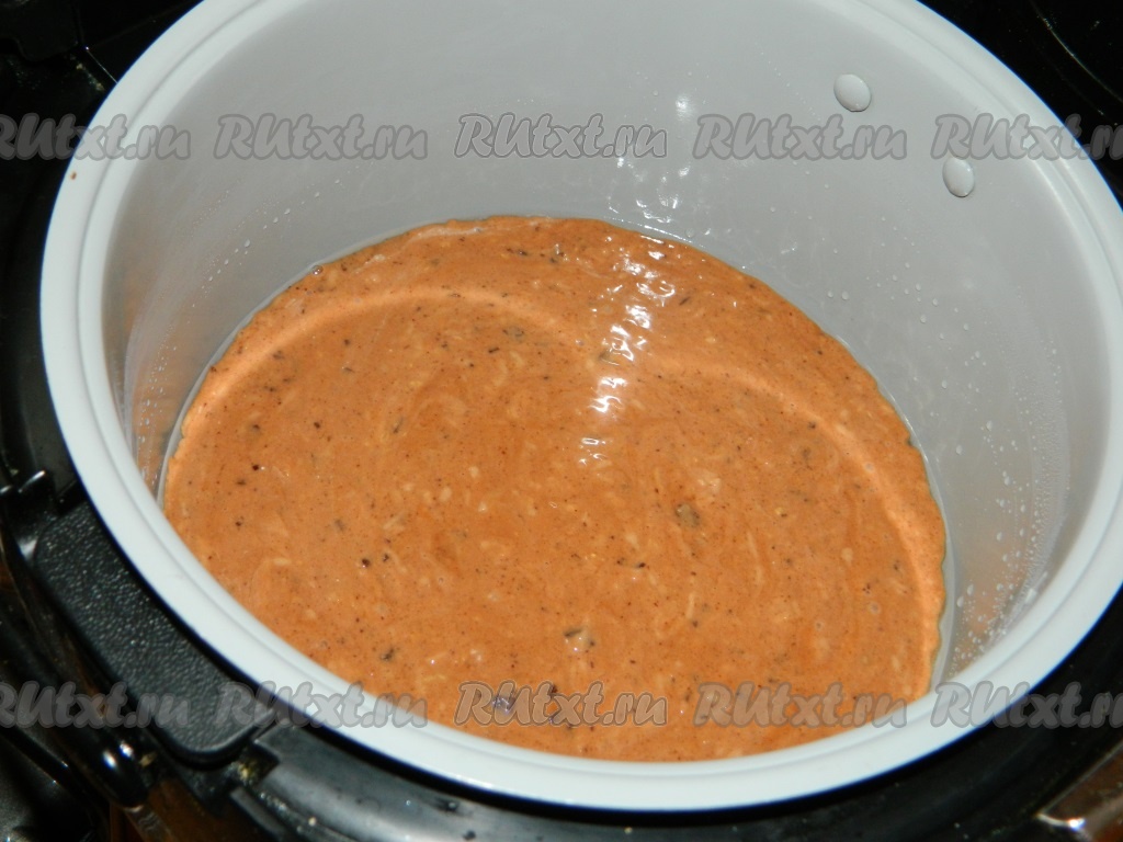 Чашу мультиварки смазываем маслом и выливаем тесто. Выпекаем шоколадный кекс с кабачками 90 минут на режиме "Выпечка".