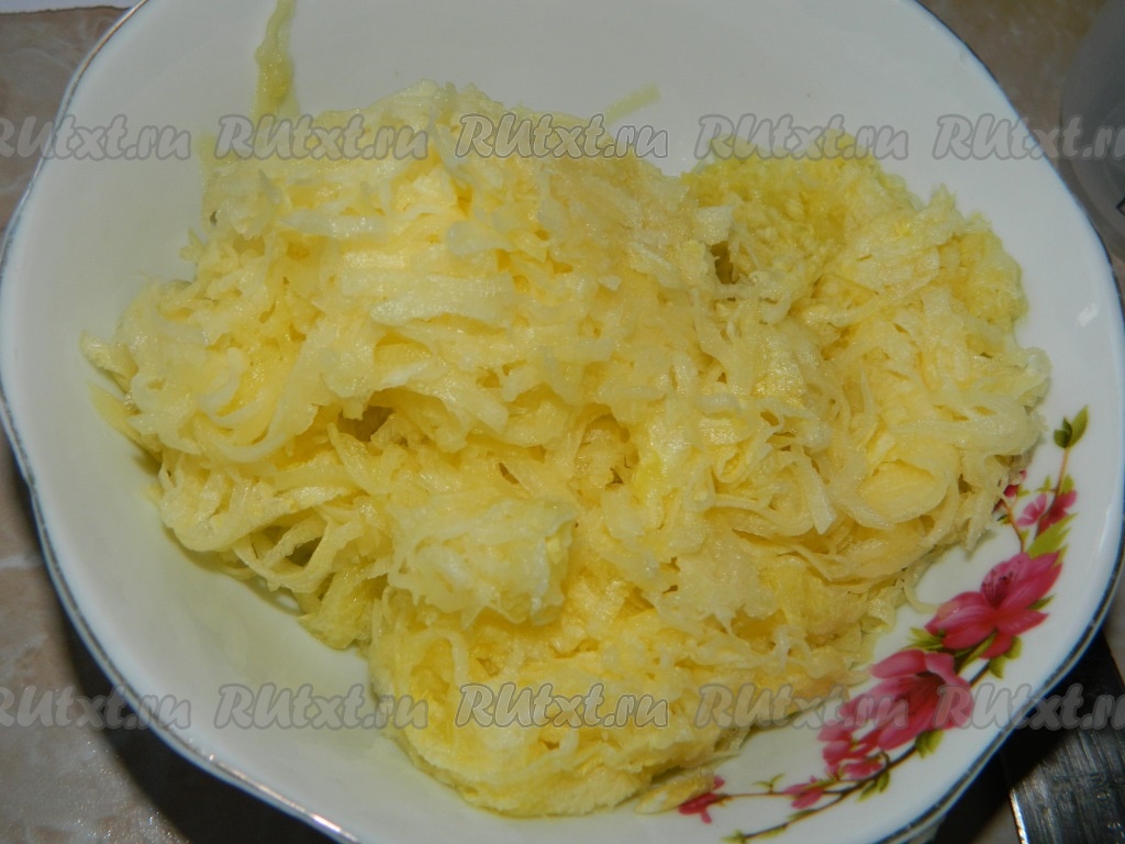 Очищенный кабачок натираем на крупной тёрке.