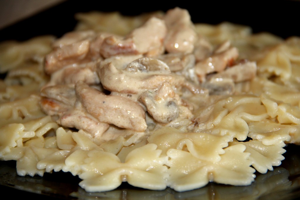 Существует немало блюд из куриного мяса. Но порой самые простые рецепты, проверенные временем, становятся особенно востребованными в семейном меню. Для своей семьи я часто готовлю куриное филе с шампиньонами в сметане на сковороде. Блюдо получается нежным, вкусным, сочным и сытным. К столу его можно подать практически с любым гарниром (в этот раз я подала с макаронами).