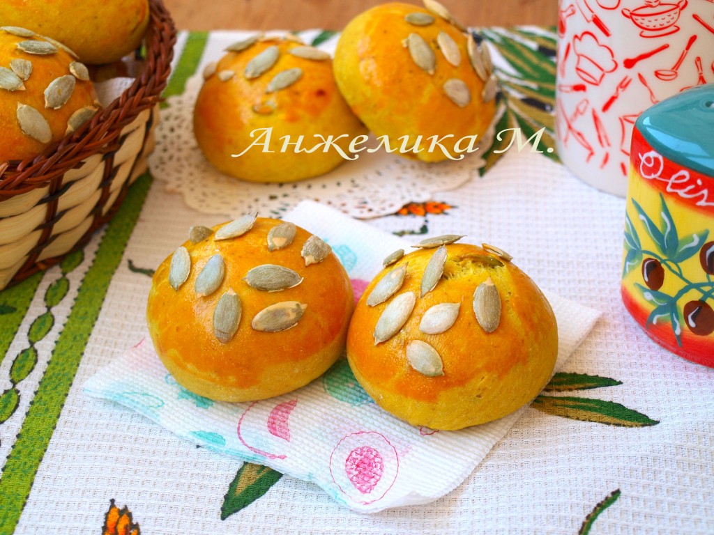 В качестве дополнения к первым или вторым блюдам предлагаю испечь аппетитные и красивые булочки с карри и семечками тыквы (или подсолнечника). Благодаря карри, эта выпечка имеет неповторимый аромат, яркий цвет и пикантный вкус. Приготовьте такие булочки и они вам, наверняка, понравятся!