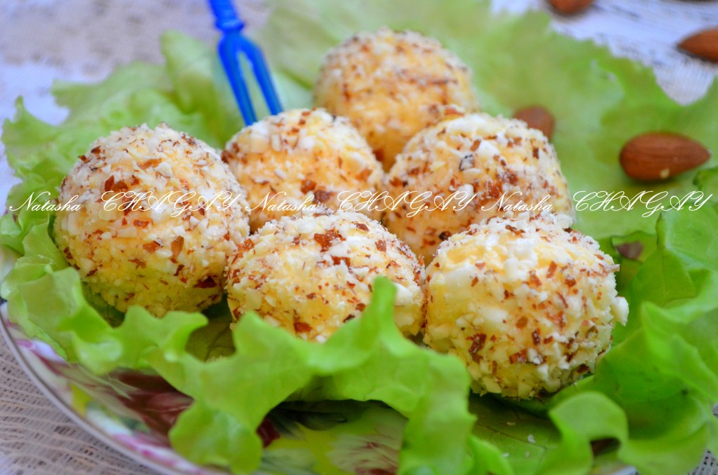 Предлагаю из сыра, яиц и чеснока приготовить аппетитные, вкусные сырные шарики. А для того чтобы закуска получилась ещё более интересной, шарики можно обвалять в измельчённых орешках, а в серединку в качестве начинки вложить орех (например, миндаль или грецкий). Я предпочитаю при подаче вставлять в каждый закусочный шарик шпажку, поэтому кушать их очень удобно. Вкусно и просто, рекомендую!