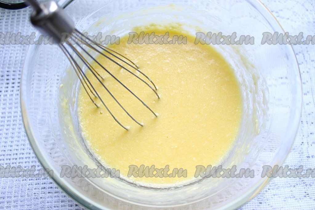В отдельной мисочке слегка взбить яйца, мед и растопленное теплое масло.