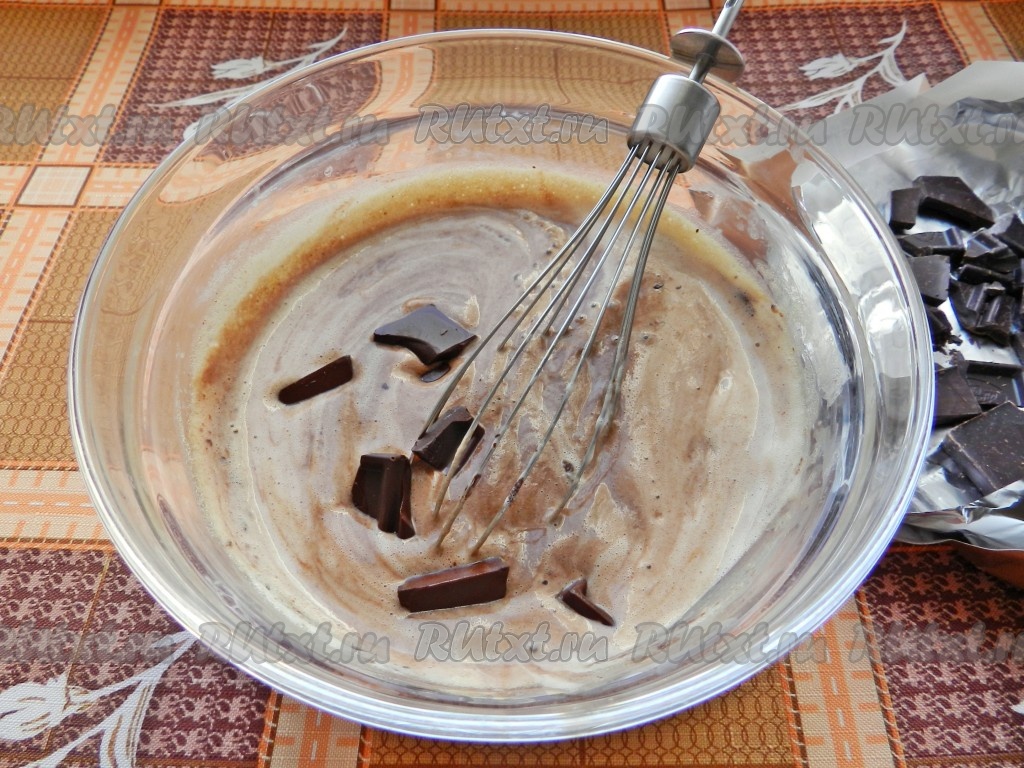 Добавить в горячий крем шоколад, перемешать, чтобы все кусочки растаяли.
