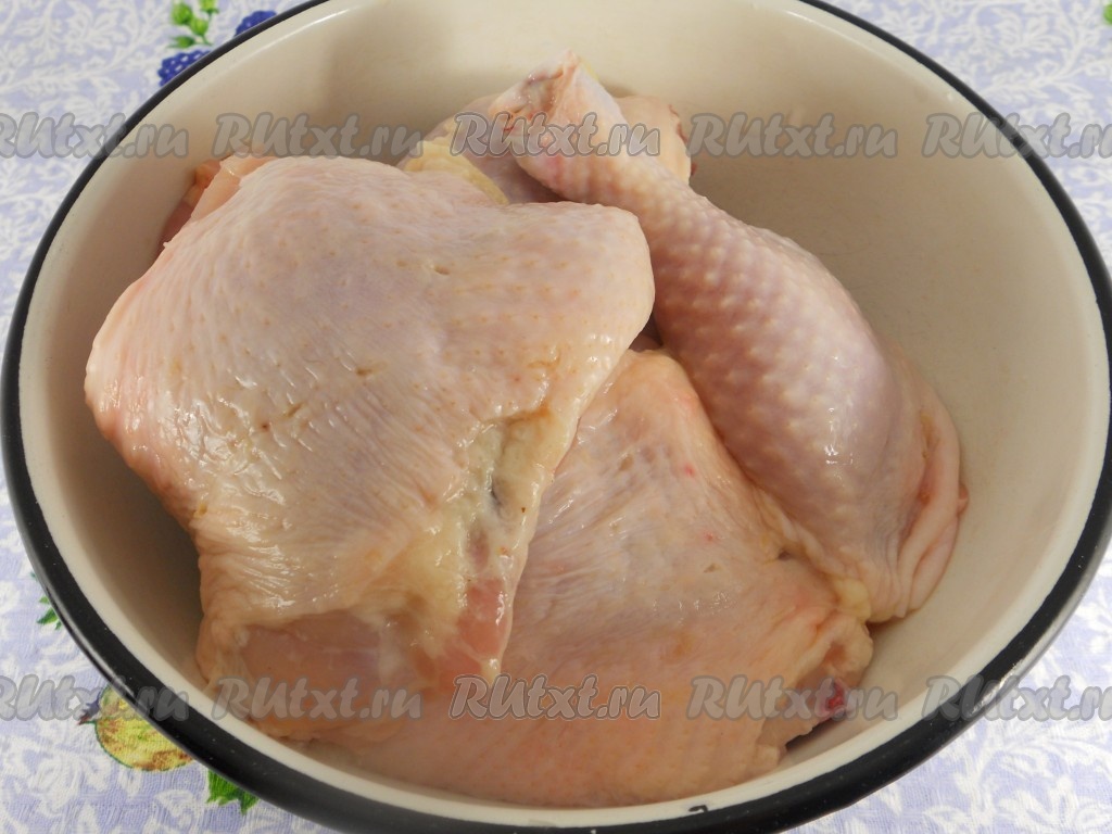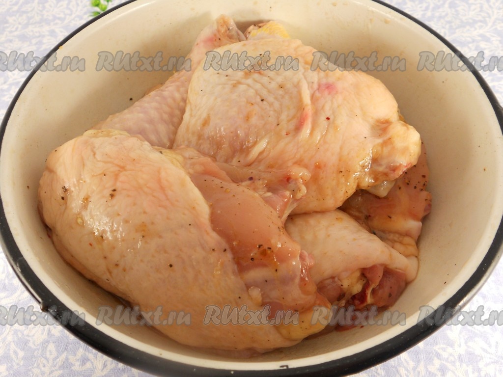 Залить маринадом окорочка, перемешать и оставить на 30-40 минут.