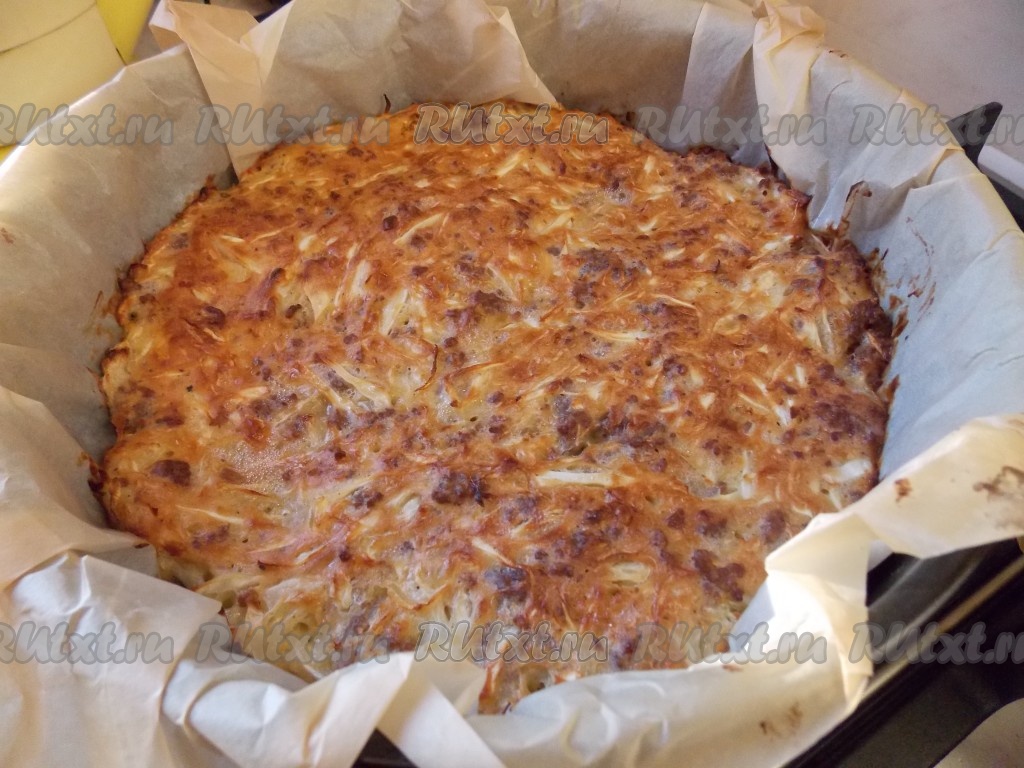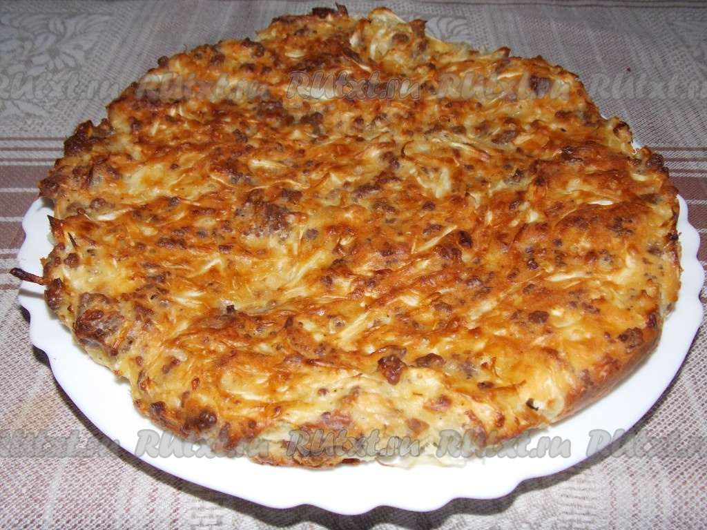 Достаём шарлотку из капусты из духовки, даём остыть, перекладываем на тарелку и подаём к столу. Пирог, приготовленный по этому простому рецепту, получается аппетитным, вкусным, сытным.