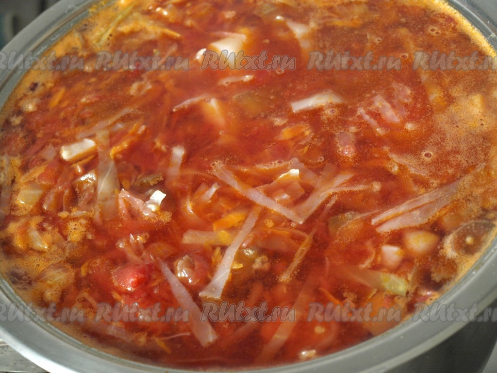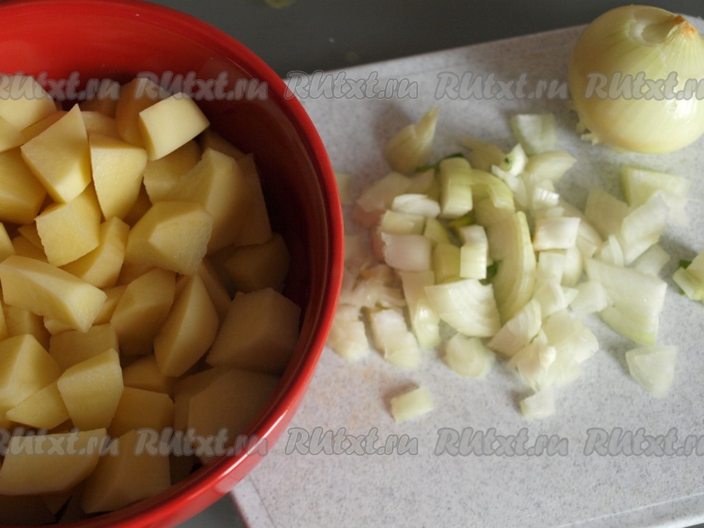 Наливаем в кастрюлю воду, засыпаем картошку, доводим до кипения, затем добавляем капусту. Когда закипит, добавляем зажарку.