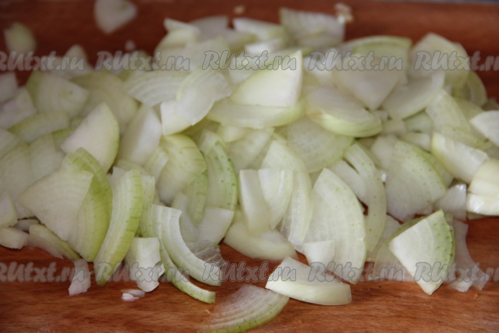 Лук очистить, нарезать на четверть кольца (или полукольца).