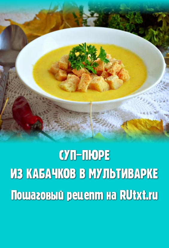 Очень вкусный, нежный суп-пюре из кабачков, приготовленный в мультиварке, подавать с гренками и зеленью.