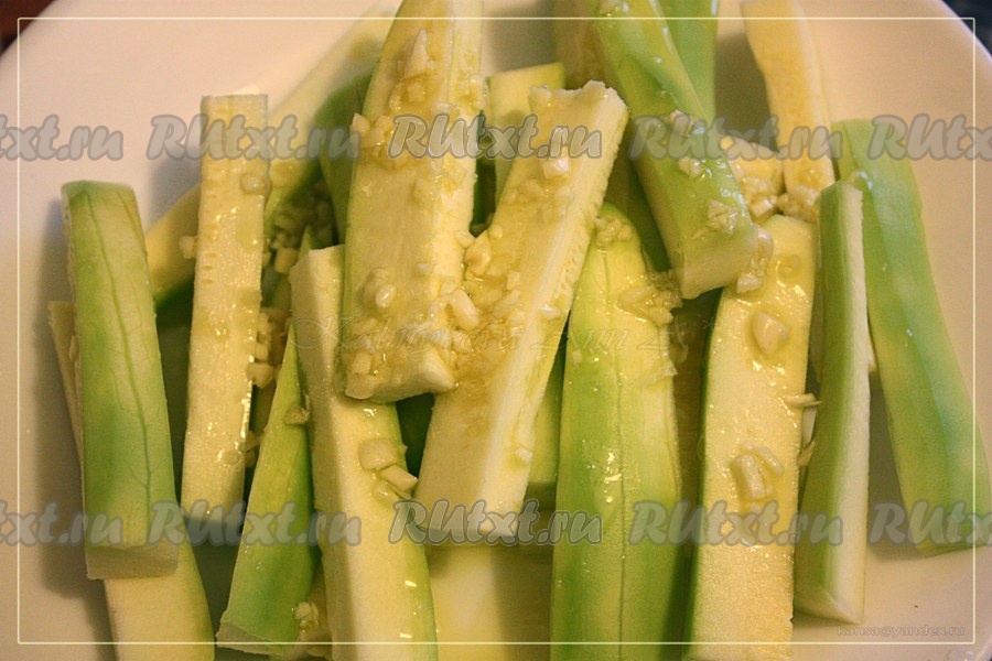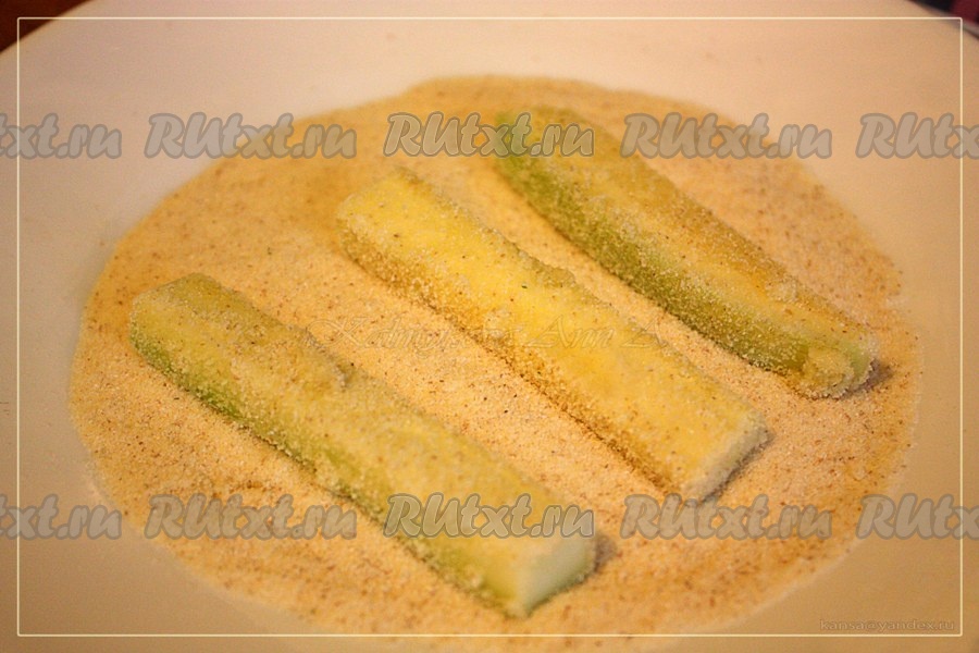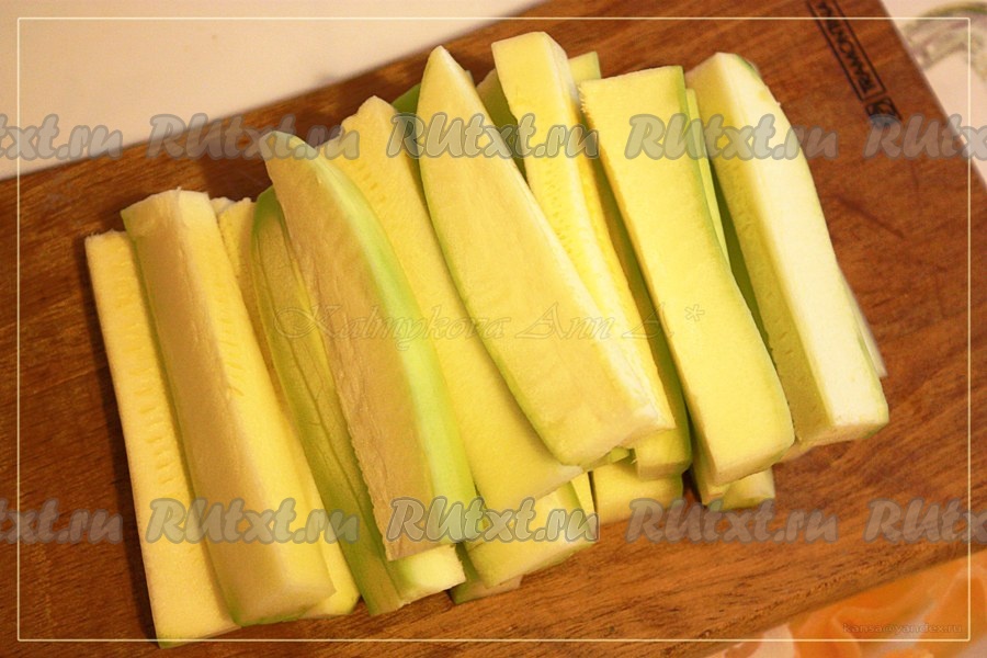 Кабачок моем, нарезаем на палочки длиной 7-10 см, толщиной 1*1 см.