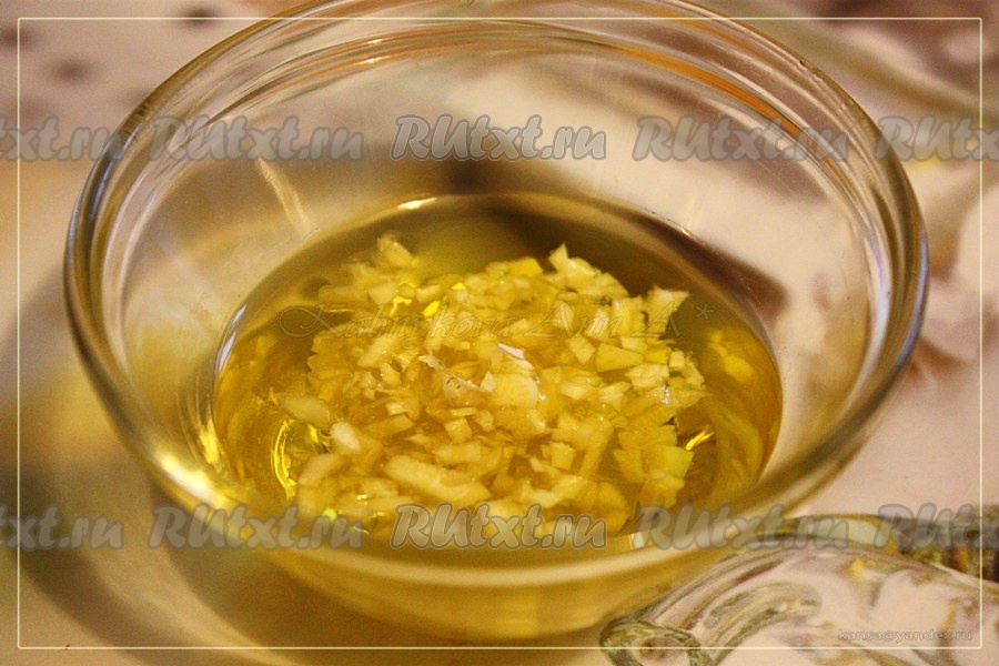 Соль, измельченный чеснок и оливковое масло смешиваем в миске.
