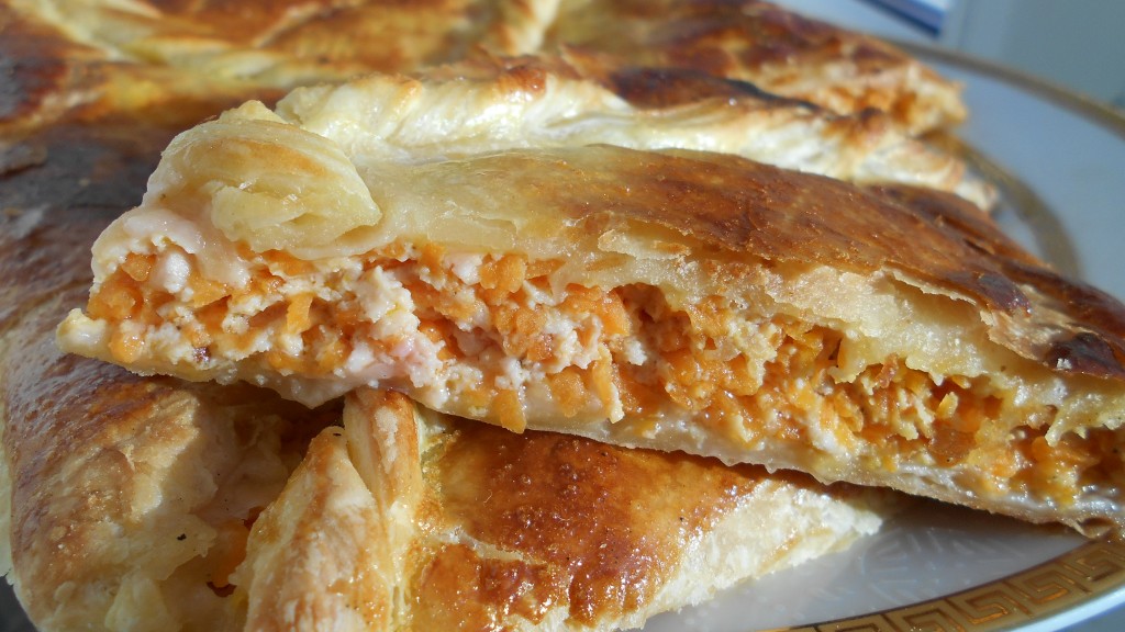 Этот пирог из слоёного теста с начинкой из фарша и тыквы относится к греческой кухне и носит название "Шумуш", что в переводе означает "зимний". Благодаря удачному сочетанию мясного фарша и натёртой тыквы, пирог получается сочным, сытным и очень вкусным. Всем советую приготовить эту несложную выпечку для себя и своих близких!