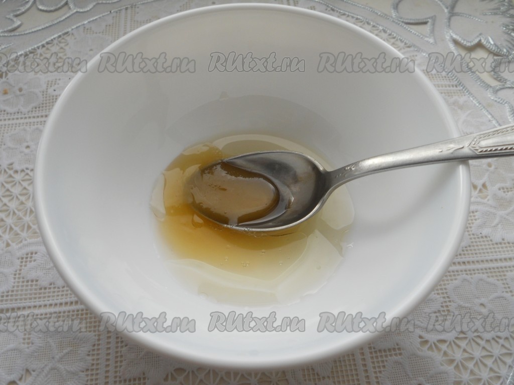 В небольшую пиалу влить оливковое (или другое рафинированное) масло, добавить мед и сок лимона. Хорошо перемешать до однородности.