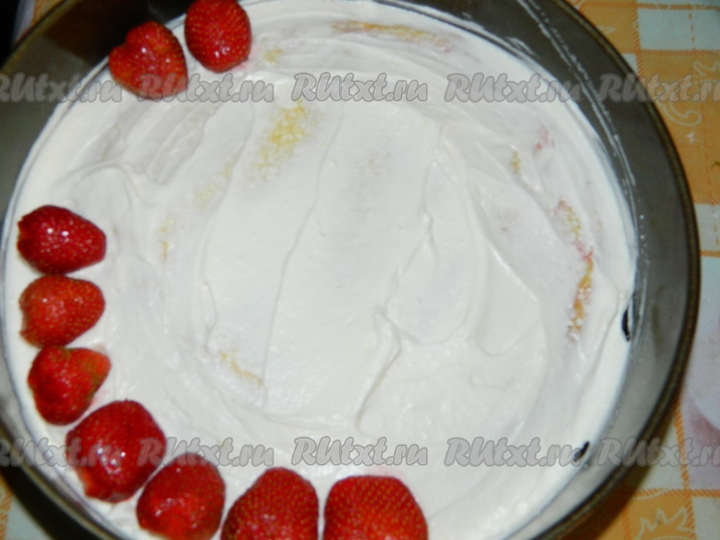 Оставшийся крем выкладываем на клубнику и разравниваем.
