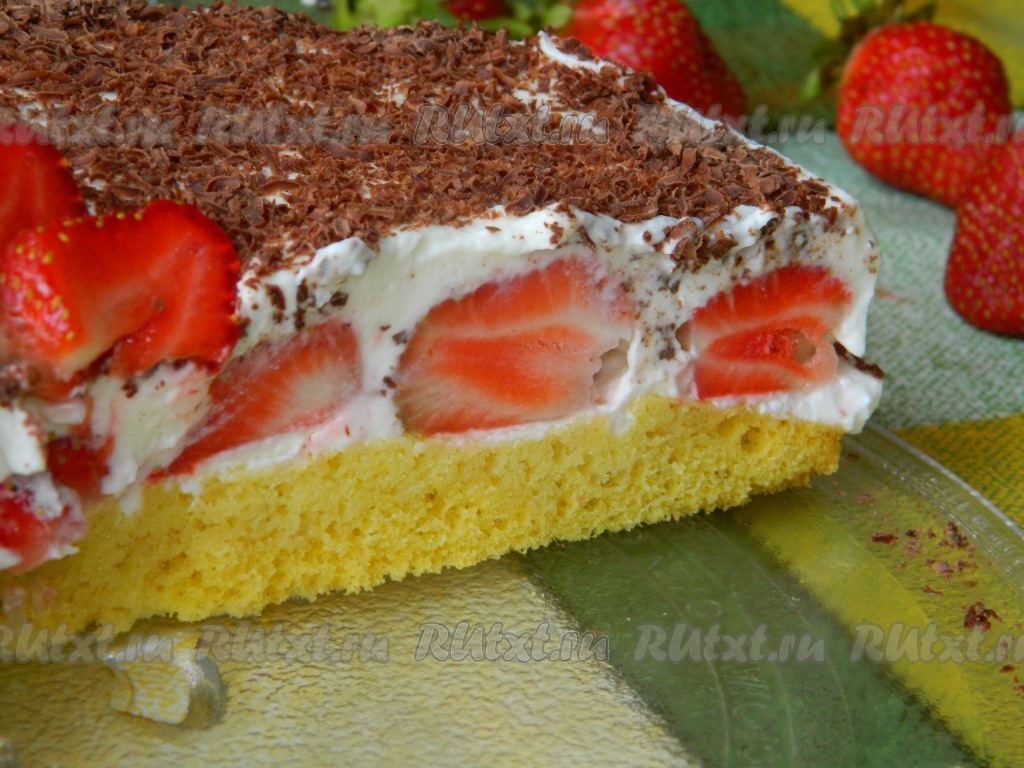 Вот так торт с творожным сыром, сливками и клубникой выглядит в разрезе.